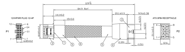 شکل زیر نحوه تخصیص پایه‌ها (Pin Assignment) برای کانکتور برق ۱۶ پین PCIe را طبق مشخصات PCIe CEM 5.1 نشان می‌دهد.